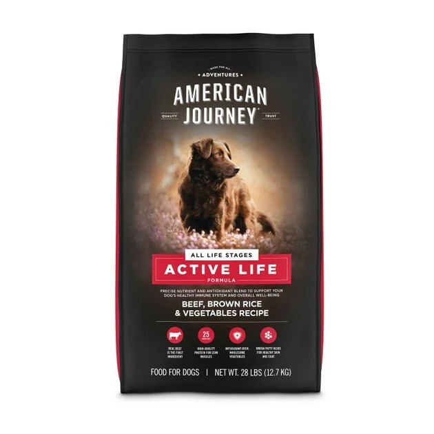 For your dog, an active life full of adventure starts in their bowl. Serve them a meal that feeds their adventurous spirit with American Journey Active Life Formula Poultry & Beef Variety Pack Canned Dog Food + Beef, Brown Rice & Vegetables Recipe Dry Food. The variety pack of poultry and beef recipes provides a well-rounded, balanced diet with real chicken or beef as the first ingredient, nutrient-dense vegetables and wholesome carbohydrate sources. These hearty, meaty, loaf-style meals deliver the precise nutrition and overall wellness support your dog needs. Meanwhile, every bite of Active Life kibble delivers a blend of nutrients and antioxidants to support a healthy immune system and overall well-being plus balanced omegas to support a healthy skin and coat. Plus, they’re crafted with no animal by-product meals and no corn, wheat or soy ingredients, so you can feel good about filling your adventure partner’s bowl with these complete and balanced recipes.