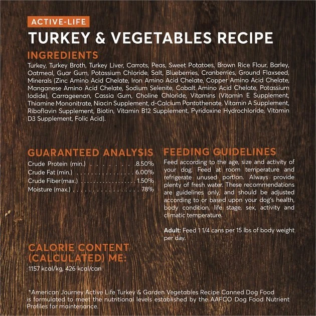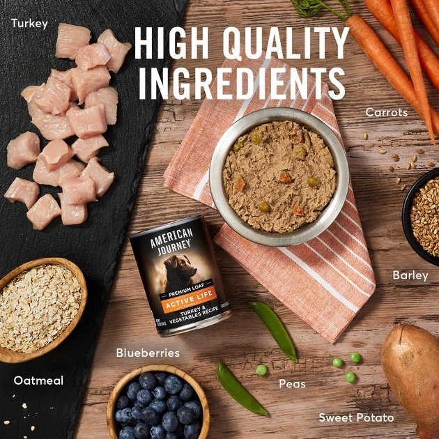 For your dog, an active life full of adventure starts in their bowl. Serve them a meal that feeds their adventurous spirit with American Journey Active Life Formula Wet Dog Food. This recipe provides a well-rounded, balanced diet that includes real turkey as the first ingredient, nutrient-dense vegetables and wholesome carbohydrate sources. Every bite of this hearty, meaty, loaf-style food delivers the precise nutrition and overall wellness support your dog needs. Plus, this recipe is crafted with no animal by-product meals and no corn, wheat or soy ingredients, so you can feel good about filling your adventure partner’s bowl with this complete and balanced meal.