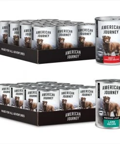 - American Journey Beef & Chicken Recipe Grain-Free Canned Dog Food, 12.5-oz, case of 12—Solid nutrition in a grain-free recipe that fuels your dog’s daily adventures. There’s no corn, wheat or soy to help avoid food sensitivities.