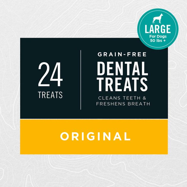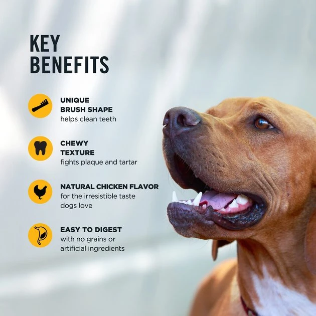 - Grain-free dental treats help freshen your dog’s breath, and they’ll love the irresistible, natural chicken flavor too.