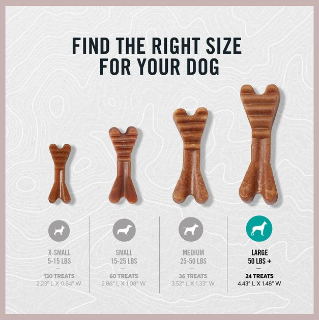 - Crafted just for large dogs, these treats are ideal for dogs 50 pounds and up.