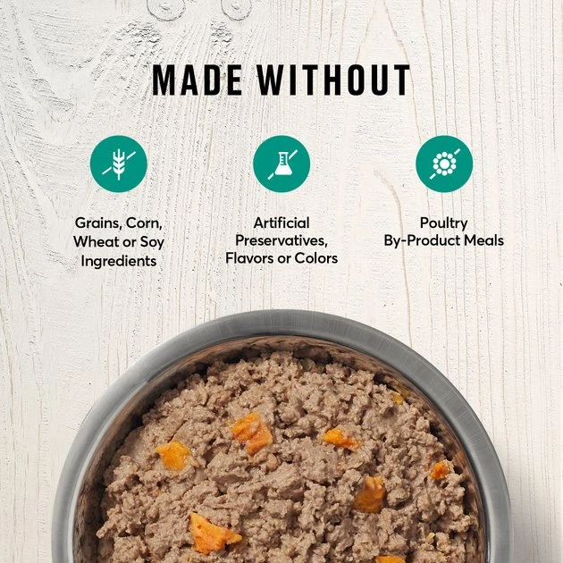 - Grain-free meal is ideal for dogs that can’t tolerate certain ingredients because it’s made with no corn, soy or wheat; packed in BPA non-intent cans for safety.