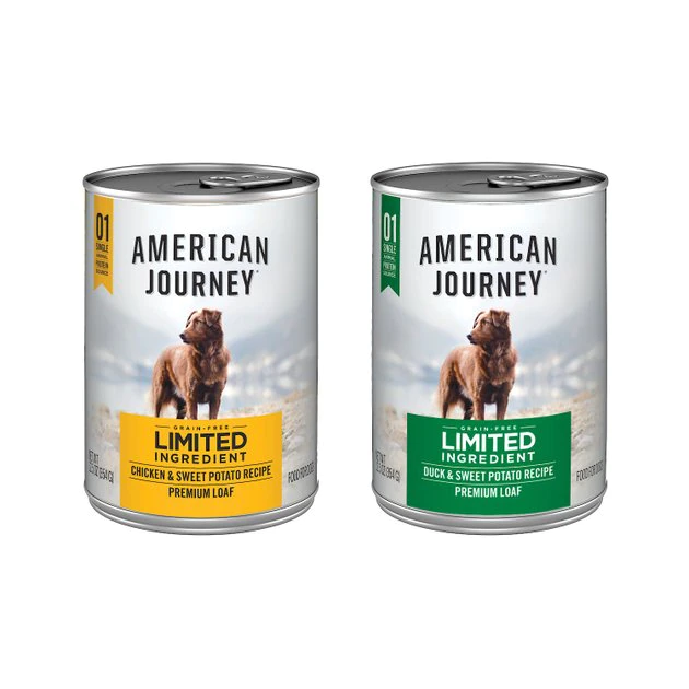 American Journey Limited Ingredient Diet Poultry Variety Pack Grain-Free Canned Dog Food fuels your dog’s daily adventures with a single poultry protein source in each formula. These delicious wet food recipes cater to dogs with food sensitivities by including only a limited number of carefully selected ingredients and leaving out things like grain, corn, wheat and soy. Real duck or chicken is the first ingredient, followed by a savory broth and wholesome sweet potatoes for an alternate source of complex carbs. With American Journey Limited Ingredient wet food, you can serve your dog a nutritious meal that delivers powerful nutrients, including essential amino acids for lean muscles and omega-3 and 6 for skin and coat support. It’s manufactured in the USA with premium, trusted ingredients from around the world and never contains any poultry by-product meal or artificial colors, flavors or preservatives.
