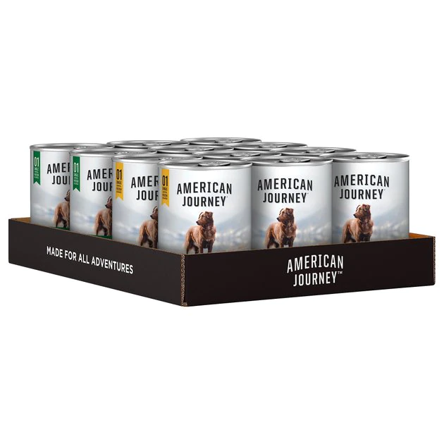 American Journey Grain-Free Wet Dog Food is formulated for dogs of all life stages, including puppies.