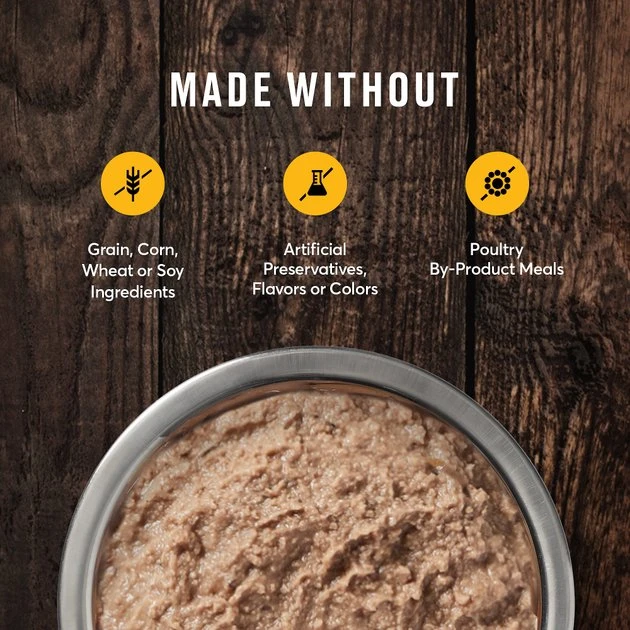 - Grain-free recipe made without corn, soy and wheat and made without poultry by-product meal or artificial colors, flavors or preservatives; packed in BPA non-intent cans for safety.