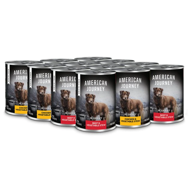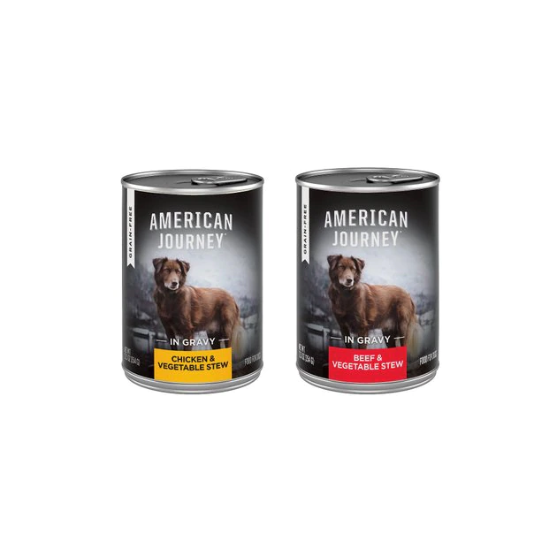 American Journey Grain-Free Wet Dog Food is formulated for dogs of all life stages, including puppies.