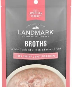 American Journey Landmark Broths Tuna, Shrimp and Whitefish Recipe Wet Cat Food Complement Pouches, 1.4 oz case of 16 + American Journey Landmark Broths Chicken, Carrots and Pumpkin Recipe Wet Cat Food Complement Pouches, 1.4 oz case of 16